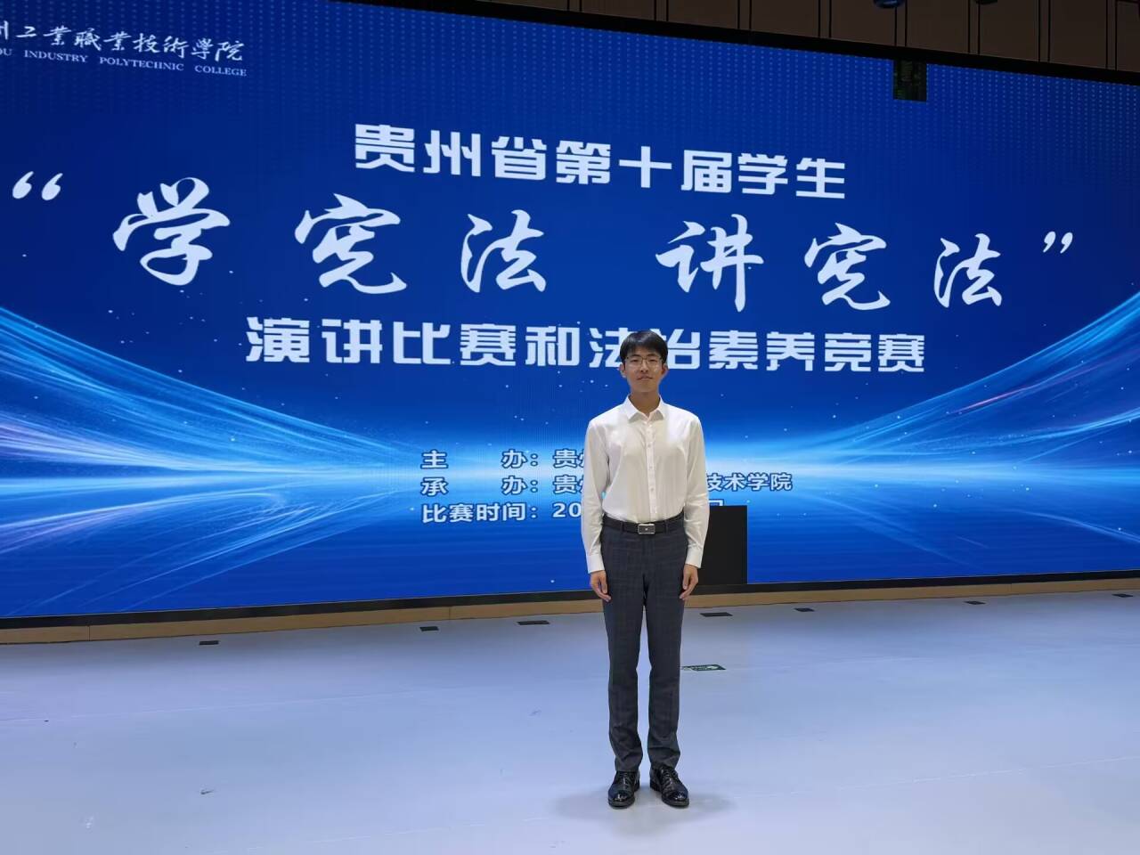 近日,贵州省第十届“学宪法讲宪法”演讲比赛和法治素养竞赛在贵州工业职业技术学院圆满落幕。来自全省各高校、中小学的数百名选手齐聚一堂,围绕宪法精神、法治理念展开激烈角逐。其中,我校乐动官方注册张丹丹同学凭借扎实的宪法知识功底荣获法治素养竞赛一等奖,西密歇根学院焦瑞图同学凭借出色的演讲表现力以及深厚的法治素养斩获演讲比赛一等奖。