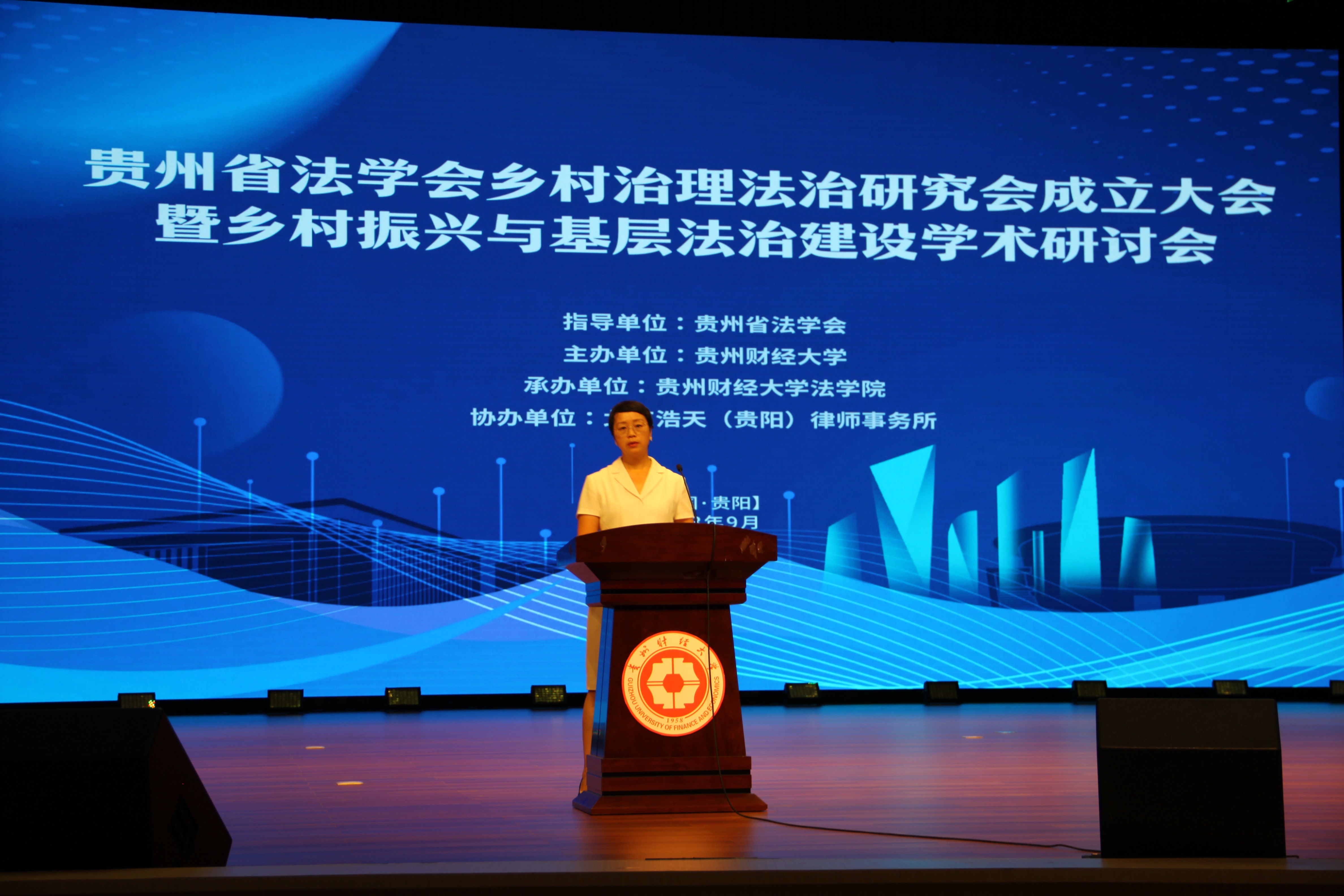 (乐动官方注册 图文/报道 王宏)9月27日,贵州省法学会乡村治理法治研究会成立大会暨乡村振兴与基层法治建设学术研讨会在贵州财经大学召开。贵州财经大学党委委员、副校长李汉文致欢迎辞,贵州省法学会专职副会长兼秘书长王占霞、贵州省社会科学院二级研究员吴大华出席会议并致辞,乐动官方注册院长陈玉梅主持会议。相关领导、嘉宾、研究会会员、学术论文作者等200余人参加会议。